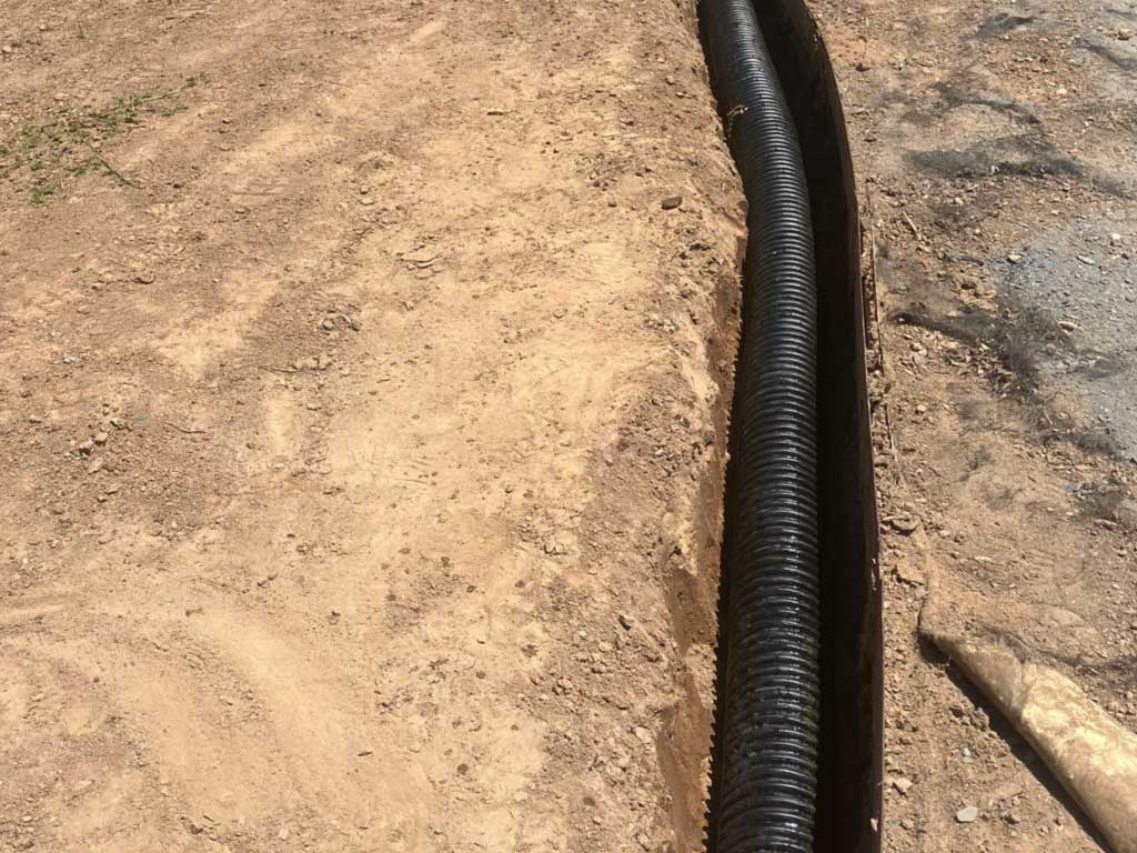 As part of the scope, CGS installed over 250 linear feet of exterior drainage throughout the property, along with a series of catch basins and a PVC exterior drainage system, ensuring proper water management across the entire site and preventing future structural damage.